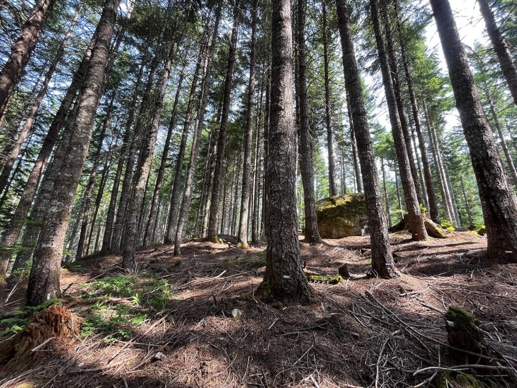 Some common methods for reducing the risk of wildfires impacting communities include reducing the volume of fuel available by thinning trees or removing adjacent forested area entirely (clearcutting). Both methods reduce the probability of a severe wildfire and improve the ability to respond effectively in the WUI. These methods may impact the health and integrity of the forest ecosystem, and these need to be better understood. The goal of this study was to document how thinning and patch clearcutting to reduce wildfire risk affects carbon stocks, stand structure, and biodiversity in the Cheakamus Community Forest near the community of Whistler, BC and in the territories of the Sḵwx̱wú7mesh Úxwumixw (Squamish Nation) and Lil̓wat7úl (Líl̓’wat Nation)This was done by conducting detailed field sampling and laboratory analysis to measure various ecological parameters, including plant and tree diversity and carbon stocks.